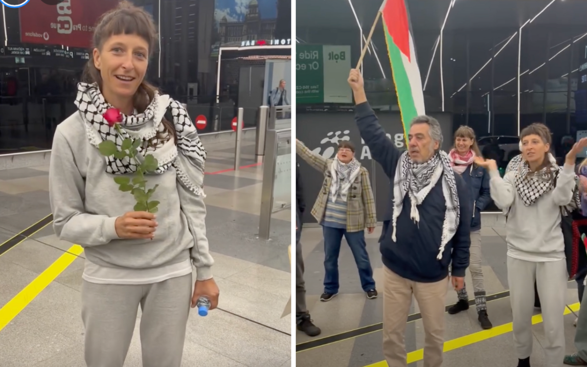Češka z flotily pro Gazu je v Praze, vítali ji heslem From the River to the Sea