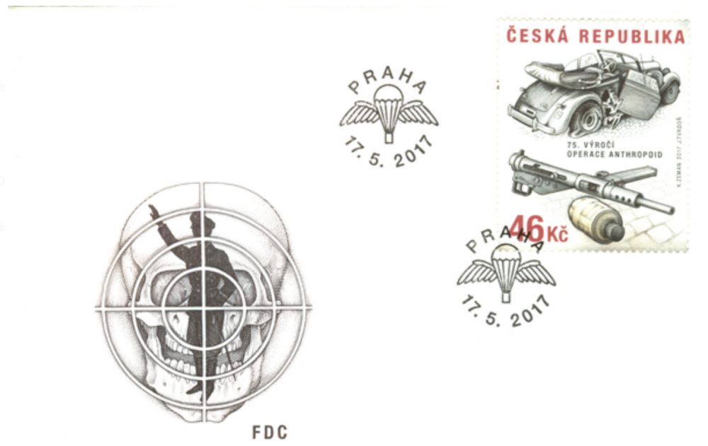 Poštovní známka k výročí 75 let od operace Anthropoid